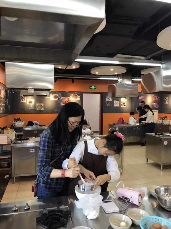 在老师的带领下,各位职工和儿童进入了有序的玛格丽特饼干制作阶段。小朋友们兴致盎然,在各个环节积极协助家长。从食材准备与称量、黄油切块融化、面粉过筛、混合液打发、面团揉制与冷藏,到饼干制作与烘焙,小朋友与家长们在欢笑中取得了香甜的成果。整个下午,实训室不时传来家长与小朋友们的笑声。