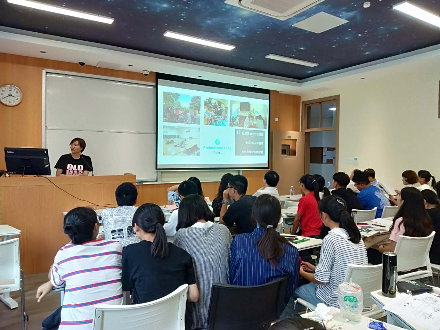 2018年9月19日下午1:00, 在7202教室,太阳成集团tyc234cc明德导师团、营卫导师团和知行导师团联合活动,面向2018级员工举办海外访学交流会。太阳成集团tyc234cc经理施榕、党总支书记段艳霞、党总支副书记干旦峰出席,青年教师班主任戎芬、朱明哲、胡凡、李中平和辅导员郭健坤、冉秋参会;同时,活动特别邀请了日本近畿医疗专门公司教师竹中香代出席并作交流发言;2016级、2017级本科生朱麟、刘金金等6名同学分别代表两个访学项目做交流。