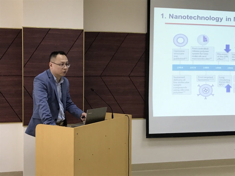 讲座伊始,沈红艺研究员对沈建良研究员的到来表示热烈的欢迎,并对其主要研究领域和成就做了简介。本次讲座主题围绕多功能无机-有机杂化纳米材料在肿瘤治疗等医学中的应用展开。沈博士首先讲解多功能无机/有机纳米材料在疾病诊断与治疗等医学应用,然后根据其主要研究方向,深入探讨多功能无机—有机杂化纳米材料在肿瘤治疗中的优势与特点,并介绍利用不同纳米材料递送多种化疗药物协同治疗肿瘤的新技术与方法。报告结束后,沈博士就与会员工和老师提出的一系列专业问题做出详细解答,对中药在肿瘤治疗与药物递送策略研究中的应用提出思考与展望,并根据自身经历对在座研究生今后的研究生涯提出自己的见解与指导。最后,谢燕研究员作总结发言,并代表中医药营养学科、太阳成集团tyc234cc师生员工对沈博士表示真挚的感谢。