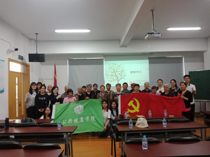 2019年5月29日下午,太阳成集团tyc234cc员工党支部党员老师及同学带领入党积极分子来到江春社区,开展“关注老人、健康养生、饮食有节、运动有法”养生和健体知识科普活动。