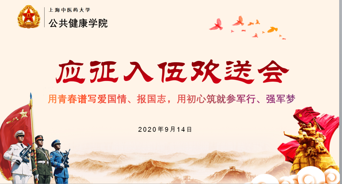 入伍新兵和6名退伍老兵参加。朱书记在会上对入伍新兵表示热烈祝贺,对退伍老兵表示热烈欢迎,并向同学们提出希望:一、要明确政治站位,不忘入伍初心,勇担军人使命,服从命令听指挥,把保卫国家作为自己首要的职责;二、要牢记勤奋、仁爱、求实、创新的校训,专业学习永不放松,把上中医精神和中医药文化带到部队中去,发挥专业优势为部队战友服务;三、要以饱满的精神面貌迎接部队的锤炼,发扬不怕吃苦精神,筑就军人气质,成长为一名优秀的解放军战士;四、老兵同学要继续发扬部队精神,继续发挥光和热,引领、带动一批同学积极向上,努力奋斗,顺利完成学业,成为优秀的中医药事业接班人。
