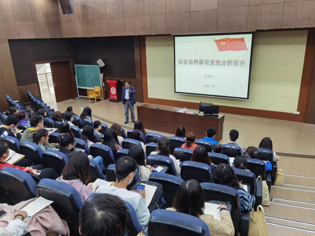 开学典礼结束后,退休局级干部党支部书记张建中为预备党员班作“谈谈怎样撰写党性分析报告”主题报告。他从什么是“党性”,共产党人为什么要作党性分析,如何撰写党性分析报告等角度勉励学员要联系自己的思想和学习工作实际作好党性分析,达到自我教育、自我提高、自我完善,增强党性的目的。马克思主义公司党总支书记陈秋生为发展对象班学员作“学习百年党史坚定理想信念”主题报告。他从在历史长河中探寻初心使命、在百年党史中汲取前行力量、在学思践悟中坚定理想信念三个部分进行讲解,进一步加深了学员们对党的历史、党的基本理论和基本知识的理解,提高发展对象政治素质,真正做到端正入党动机,自觉从思想上入党。