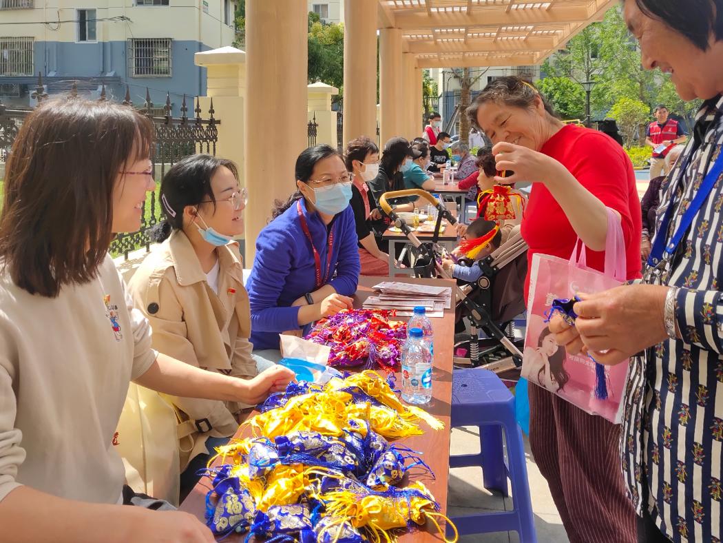 5月19日上午,公司党总支一行十余名党员来到江春居民区,在广场设置咨询点,以营养咨询、健康咨询为主要内容,开展针对老年居民的健康志愿服务。营养专业师生党员以“合理膳食,营养惠万家”为宣传口号,与居民零距离互动,普及营养健康知识、传播营养健康理念。健康咨询组师生开展常见病的治疗建议、用药指导,并对日常自我防护管理给出合理建议。在社区活动现场同时展示和教授居民八段锦、推广和发放师生党员共同制作的中药香囊,这些具备中医药特色的文化传播,多维度提升居民健康意识、提高居民健康素养。此外,师生党员参与到社区新冠疫苗接种宣传志愿工作中,耐心细致为老年人解释新冠疫苗接种的益处,帮助他们进行线上预约操作,打通疫苗接种宣传“最后一米”。