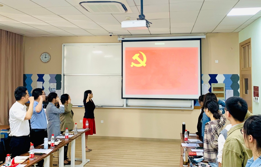 党总支副书记干旦峰领誓,全体毕业生党员庄严地举起右拳,宣读誓词“我志愿加入中国共产党,拥护党的纲领,遵守党的章程,履行党员义务……。”一句句誓词响彻6月的三星河畔,让党员们铭记党的性质与宗旨,激荡内心情怀,以更加饱满的精神面貌迎接新的挑战。
