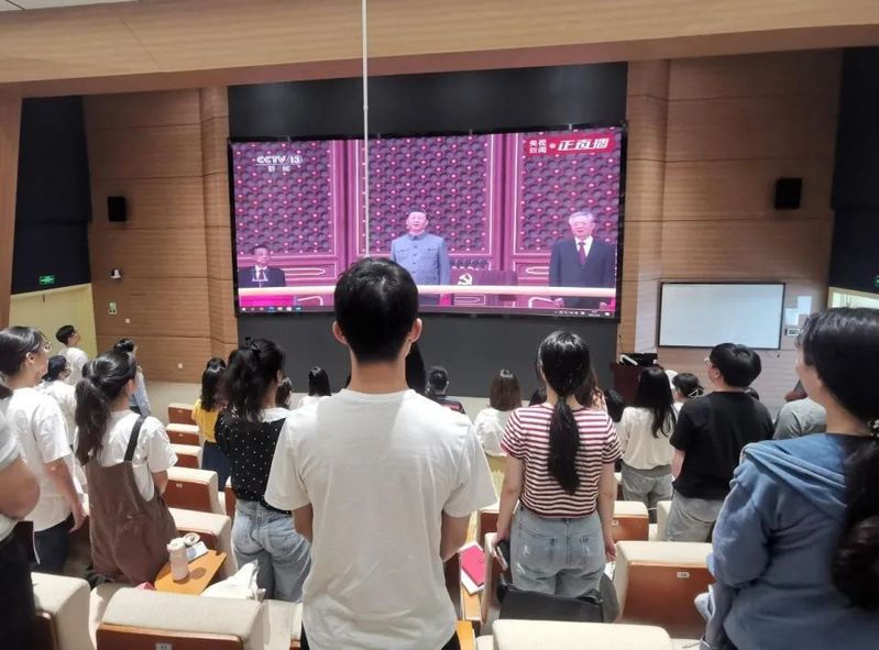 太阳成集团tyc234cc教职工在公司会议室观看庆祝大会直播
