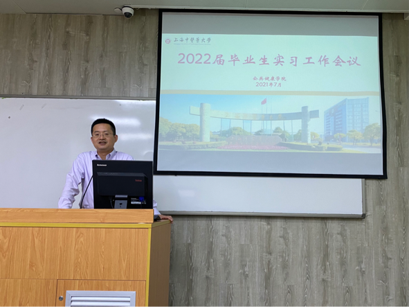 7月1日上午,金如锋老师为同学们详细介绍了预防医学专业实习内容与毕业论文规范。随后,刘晔翔所长对卫生监督所实习培训作出说明,并以普陀区卫生健康委员会监督所为例讲述成绩考核的细节与要求。