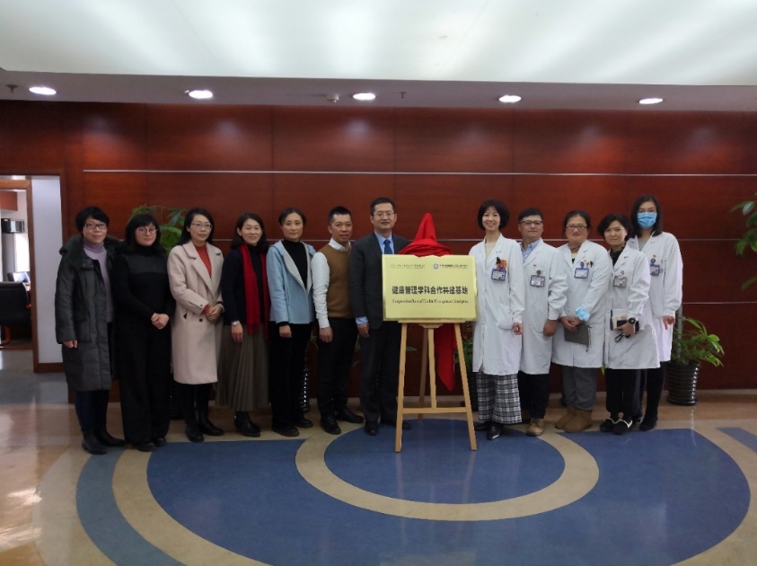 12月31日上午,公司与黄浦区豫园街道社区卫生服务中心就“健康管理学科合作共建”签约暨揭牌仪式顺利举行。公司经理赵海磊、副经理谢国群、党政办公室主任冀黎平、荆丽梅副研究员、汤晶晶老师、周典老师、刘霞老师,豫园街道社区卫生服务中心主任张扬、副主任刘凯等共同出席。