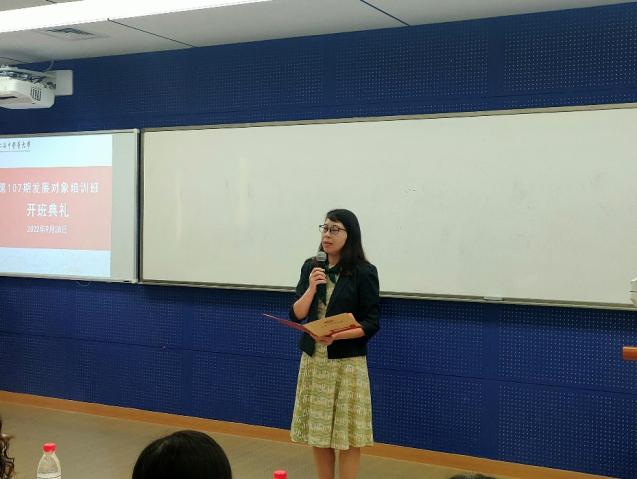 段艳霞书记作开班动员,她强调要充分认识举办党员发展对象培训班的重要意义,要求学员严格纪律要求,不断端正入党动机,坚定理想信念,把党员的标准内化于心,外化于行,确保学习培训取得实实在在的效果,以更加昂扬向上的精神风貌迎接党的二十大顺利召开。