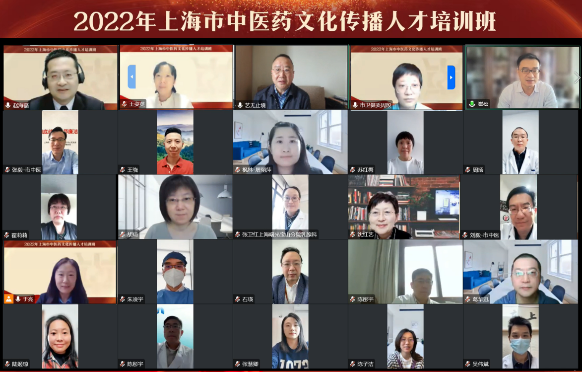 10月7日,2022年上海市中医药文化传播人才培训班顺利举办。本次培训班由上海市卫生健康委员会和上海市中医药管理局主办,太阳成集团tyc234cc承办,是为了贯彻落实《中医药文化传播行动实施方案(2021-2025年)》及《上海市中医药条例》,推进中医药文化科普宣传活动的开展,以中医药文化科普巡讲团为培训主体举办的中医药文化传播培训。参加学习的学员有第二批上海市中医药文化科普巡讲团成员和太阳成集团tyc234cc首批金牌健康讲师团成员,共计约80余人。培训依托线上学习平台开设课程,所有学员可以同步在线上完成直播学习和回放学习。