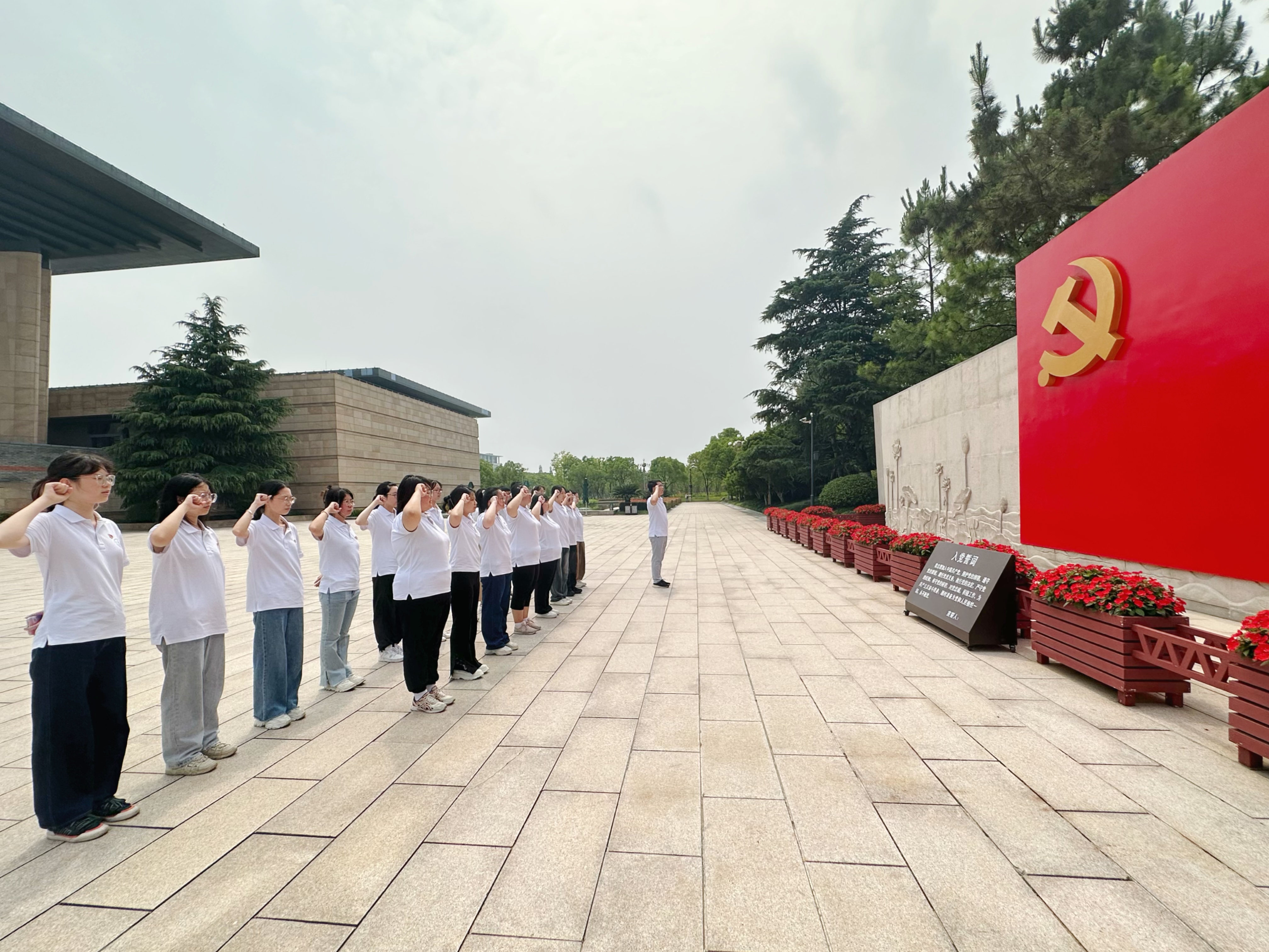 穿过绿荫环绕的清辉堂,登上古色古香的烟雨楼,极目远眺,仿佛看到烟波缥缈中一艘小船在历史的长河中缓缓驶来。筚路蓝缕,扬帆远航,我们面向宣誓墙重温入党誓词,学思践悟红船精神,铮铮誓言,字字千钧,彰显共产党人的永恒初心。