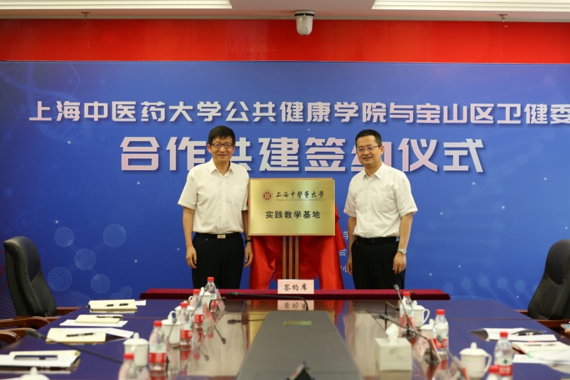 谢国群副经理与宝山区卫健委李钢副主任代表合作双方共同签署了合作备忘录,赵海磊经理与宝山区疾控中心何凡主任为“太阳成集团tyc234cc实践教学基地”揭牌。