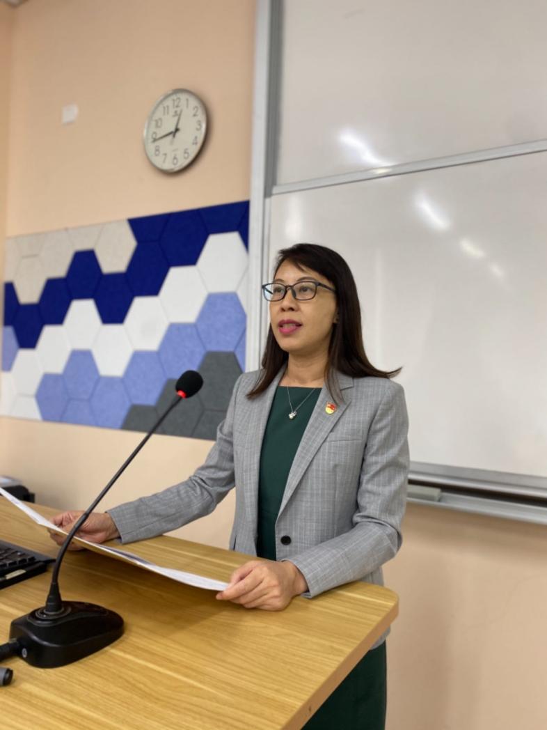 学习班班长、2023级公共事业管理专业杭梦圆作为学员代表发言。她讲述了自己通过观看革命历史题材电视剧《觉醒年代》获得入党启蒙,并通过进一步学习而决定递交入党申请书的心路历程,她表示会充分利用好学习班机会,进一步加深对党章的理解,端正入党动机,提高思想觉悟,争取早日入党。