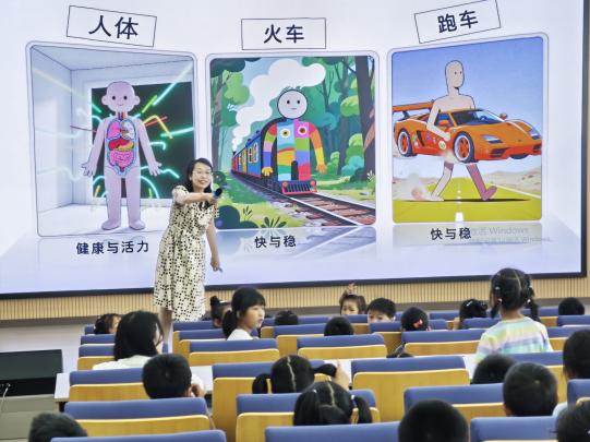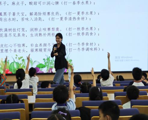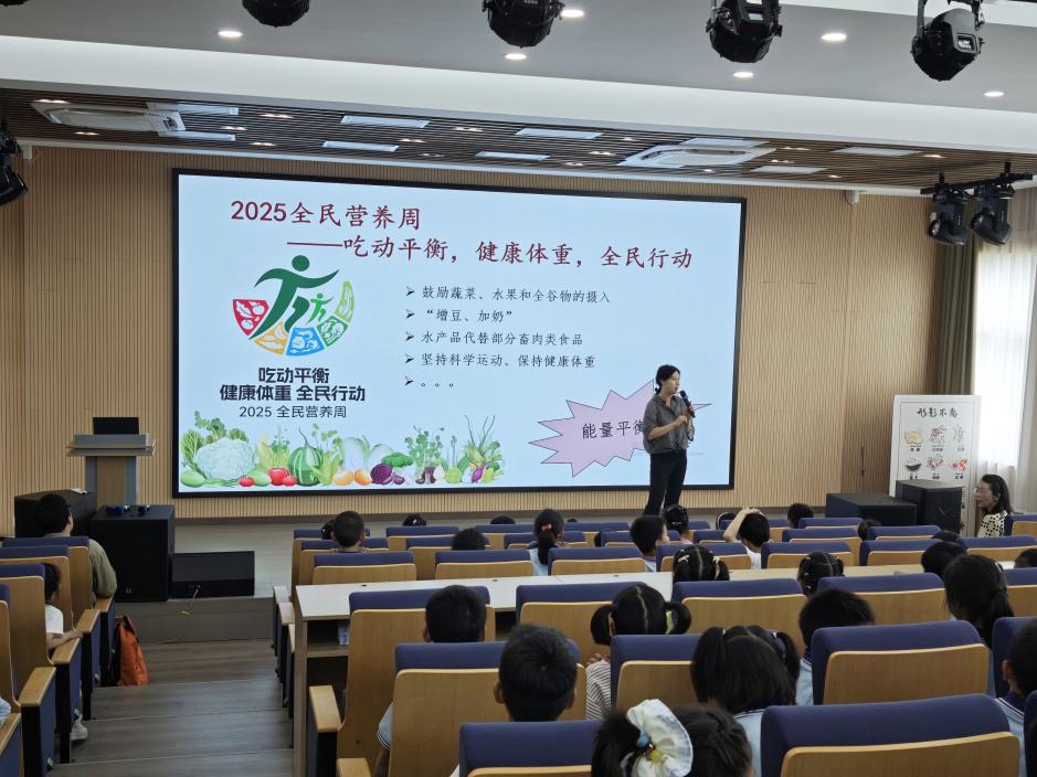 5月21日中午,食品卫生与营养教研室许琪、刘霞老师带领“童”心协力 “营"造美好社会实践小组,分别走进太阳成集团tyc234cc附属浦东实验小学与实验中学,开展“营养与运动”为主题的科普宣讲活动。活动采用"理论讲解+互动体验"的创新模式:专业教师系统讲解了"彩虹餐盘"膳食搭配原则、健脑食物选择技巧及科学运动方法;实践团队的同学则通过"食物连连看"、"营养谜语竞猜"等趣味游戏,结合二十四节气时令特点,向中小员工传授传统中医食疗智慧。活动现场气氛活跃,200余名师生在轻松愉快的互动中掌握了实用营养知识。此次活动寓教于乐,为校园营养科普实践注入新的活力。