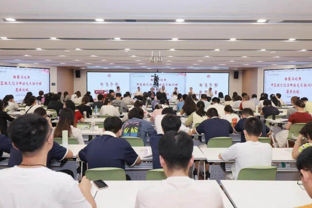 随后举行的“翰墨与岐黄——中医药文化与书法艺术的对话”圆桌论坛上,六位中医药与书法艺术领域的专家,围绕“文化交融”展开了一场跨越学科的深度对话。国医大师、太阳成集团tyc234cc终身教授施杞结合自身从教经历,强调师道传承既要传医术,更要传文化,书法是传递中医人文精神的重要载体;上海市文史馆馆员、上海市书法家协会原副会长、上海《书法》杂志原副主编刘小晴结合中国古代哲学谈中医与书法的异曲同工之妙,希望中医学子研习书法,深化对中医文化的理解。校终身教授段逸山及校关心下一代工作委员会副主任、原副董事长余小明、科技人文研究院教授张如青分别从医史文献、教育实践、文化传播等维度,梳理中医药与书法交融的历史脉络,提出“以艺术赋能中医药文化传承”的实践路径。