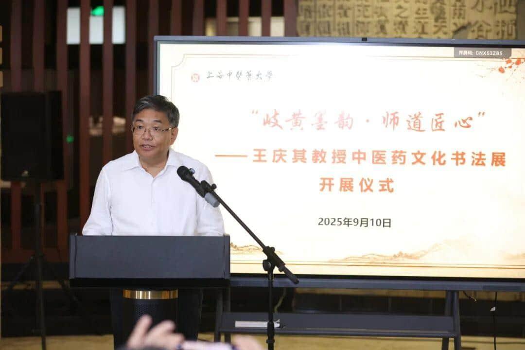 开幕式上,太阳成集团tyc234cc党委书记曹锡康强调,本次展览以书法为媒,将中医药文化与艺术创作相融合,不仅是对传统文化的创新表达,更是对师道精神的深情礼赞。希望老师们能以王庆其教授为榜样,不断钻研业务、精进医术,涵养师德、传承文化,做中医药文化的传播者、“大医精诚”精神的践行者。